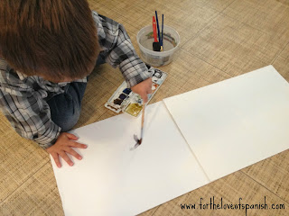 This project was probably one of my favorites we have done so far this fall. After we painted the esqueleto, we read a couple of books by Yuyi Morales about a skeleton character named Señor Calavera. Both books are award-winning, recieving the Pura Belpré Medal for Latino/a authors and illustrators.