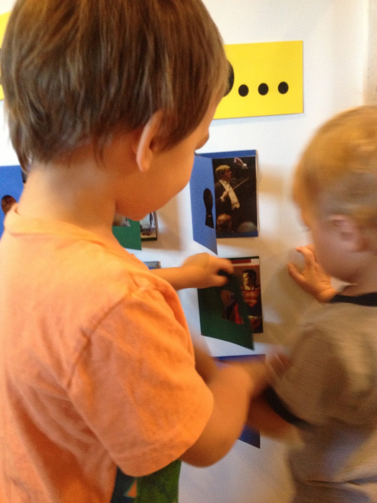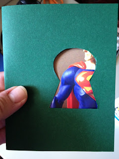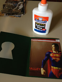 After I found a good variety of pictures, I glued them all inside a “door.” I was so excited to find this Superman one . . . Jefe loves superheroes right now and I could not wait to see his reaction.