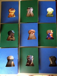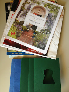 I made some little doors with key-holes, and gathered some old magazines, scissors and glue.