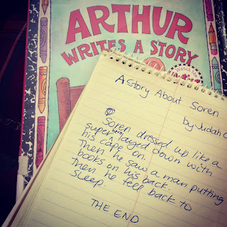And last but not least, viernes! This morning we read some of the awesome library books we picked up on miércoles. One of them inspired Judah to write a story. So fun. 🙂 What did you do esta semana (this week)?