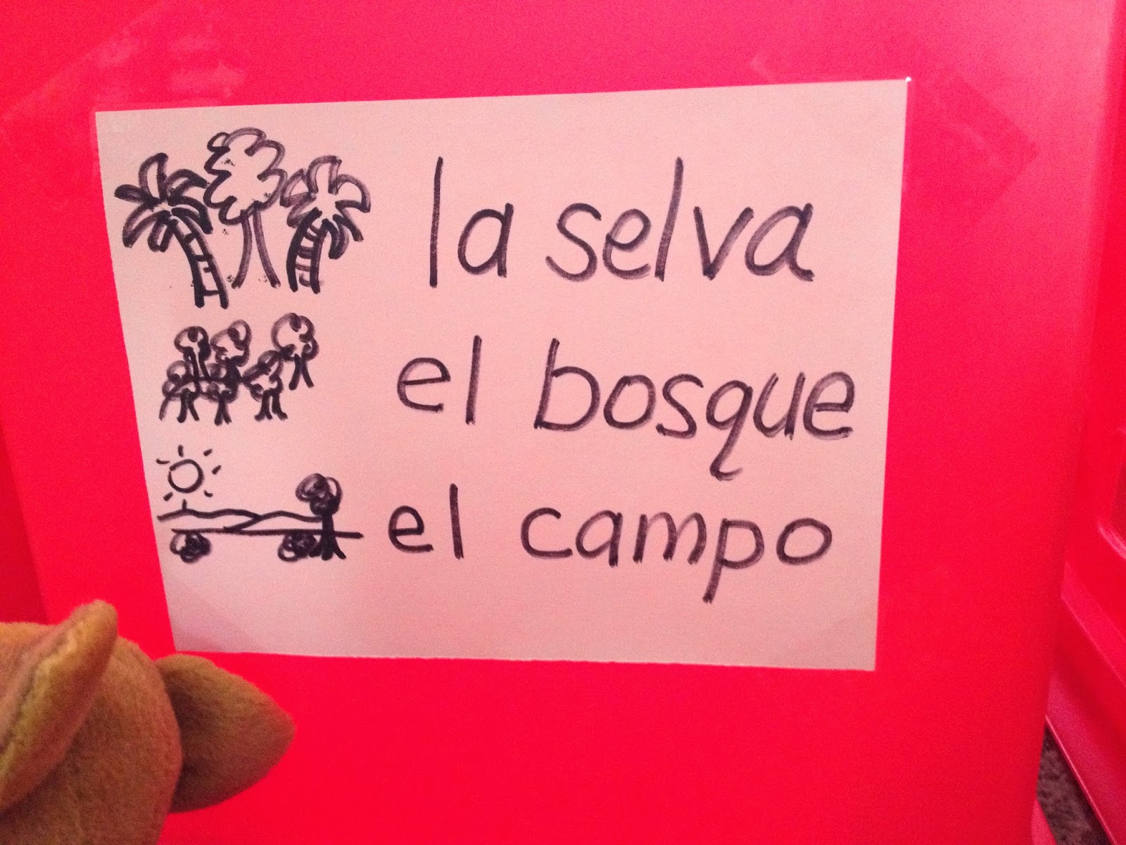 You can also just make simple statements and point to where the animal goes: “La cebra vive en el campo.” In this instance I had to simplify some habitat names. Zebras live in the savannas but that is so specific so you can use the word prairie or plain, which translates to la pradera in Spanish. I chose el campo because that means field, countryside, or meadow. Or to make things even easier, make one label that says zoológico, and any animal that you cannot observe near where you live can live at the zoo.