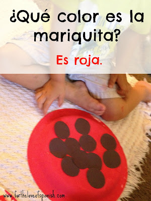 As you are making your ladybug with your kiddos, try using craft words in Spanish too! Spanish Playground has a great post here introducing craft-centered Spanish vocabulary. Also, try using these Spanish phrases to talk about the ladybugs spots, legs and color.